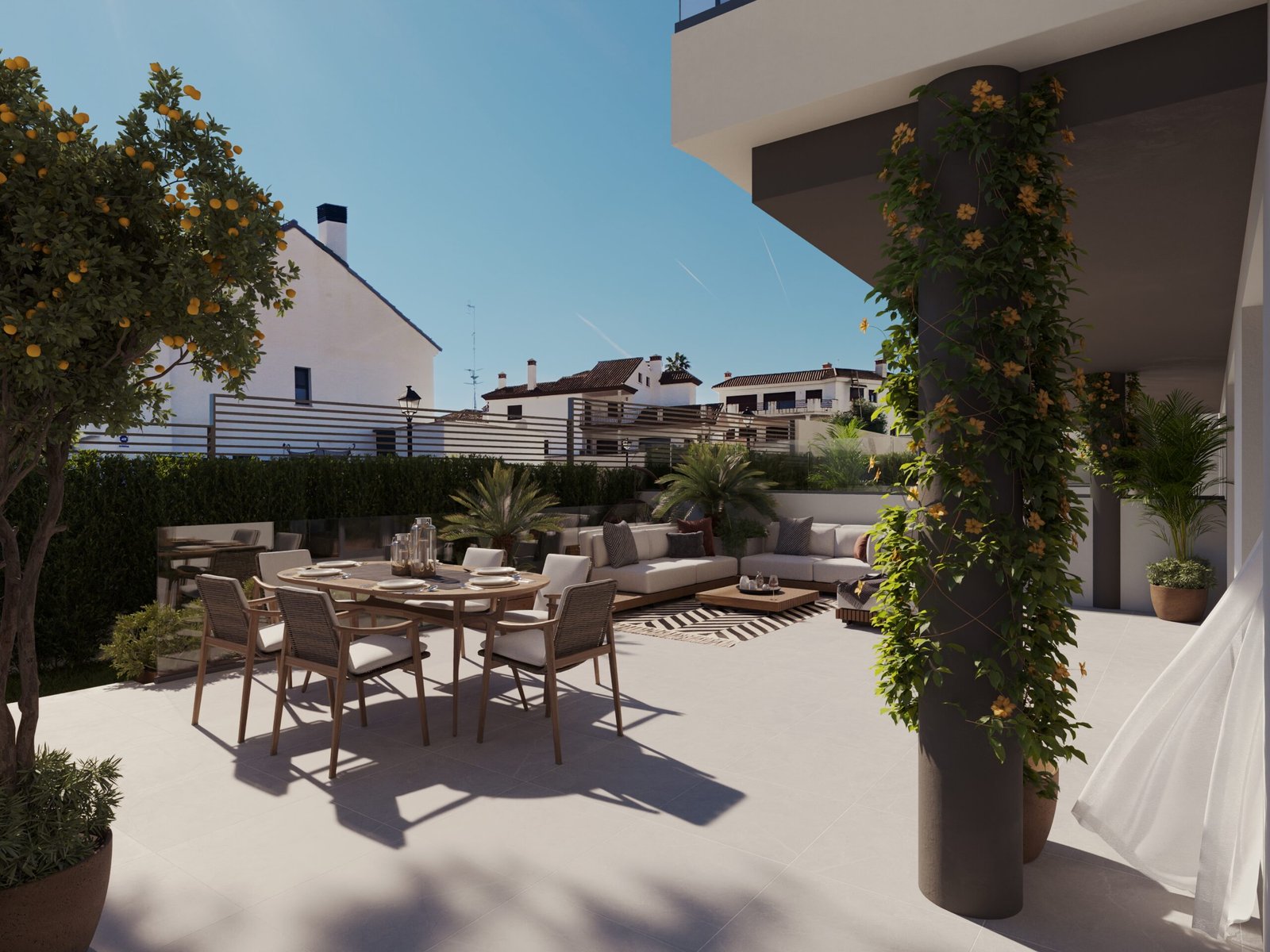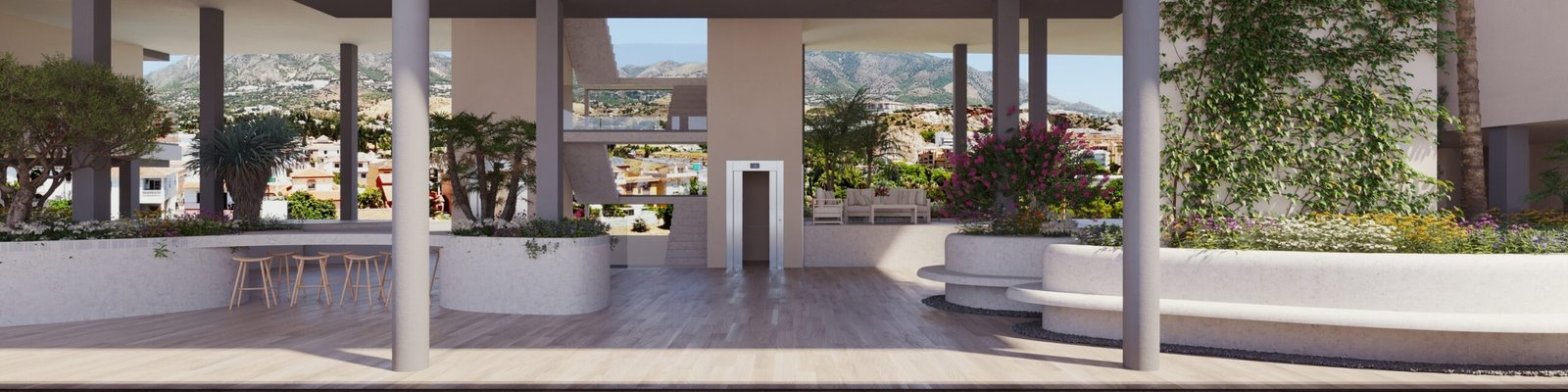 Las infografías empleadas para la venta, son meramente orientativas, no teniendo carácter contractual, en cuanto a colores, texturas, vegetación, altura del vallado, y mobiliario, apertura/giros de huecos, ubicación de instalaciones o sanitarios.